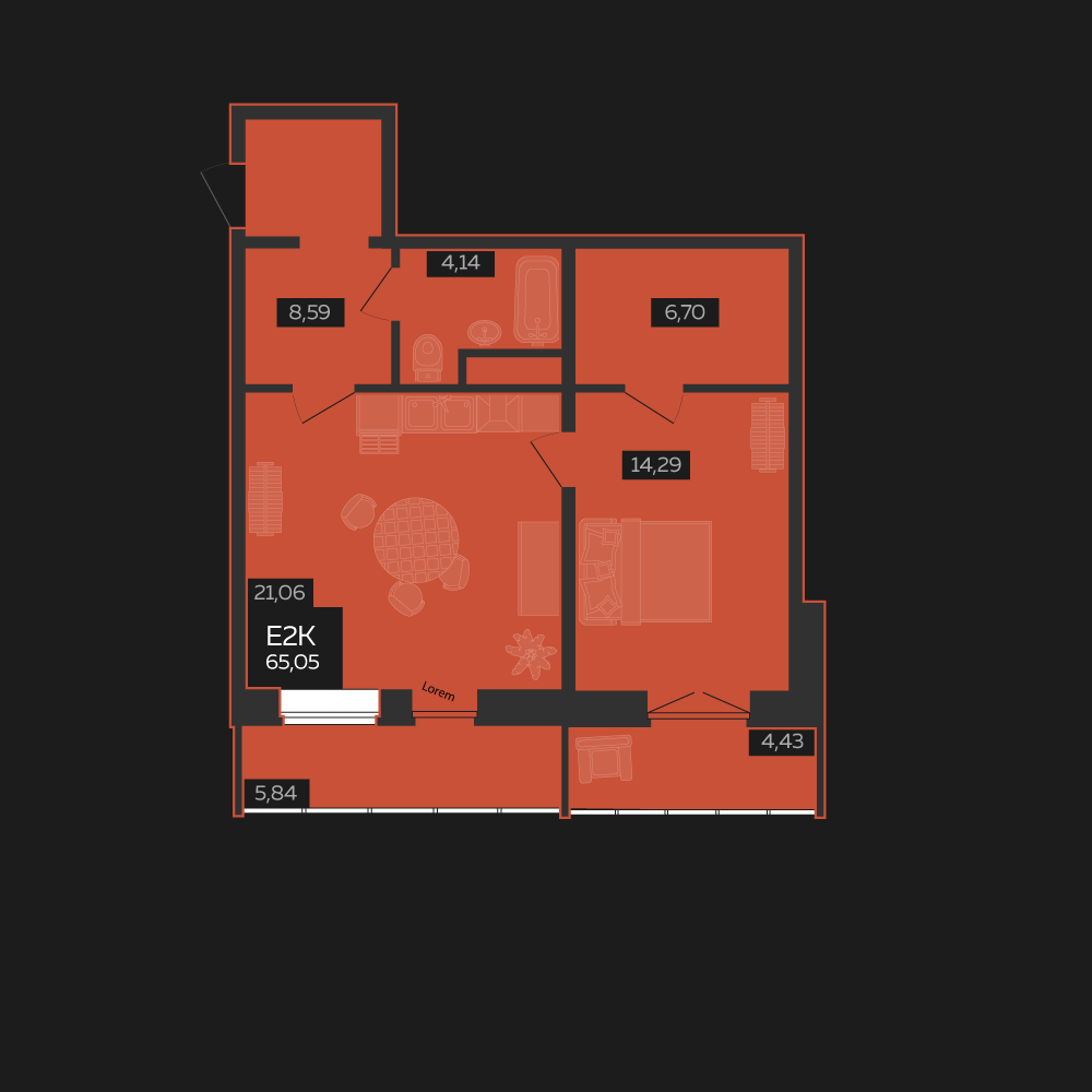 5,84+4,43 м²