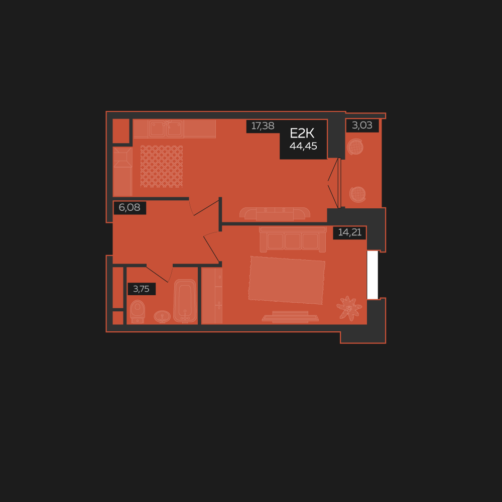 Евро-однокомнатная квартира от 1 828 100 рублей.