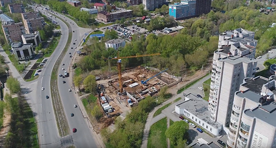 Несущая конструкция из монолитных железобетонных пилонов, расположенных продольно и поперечно, гарантирует надежностьи безопасность здания