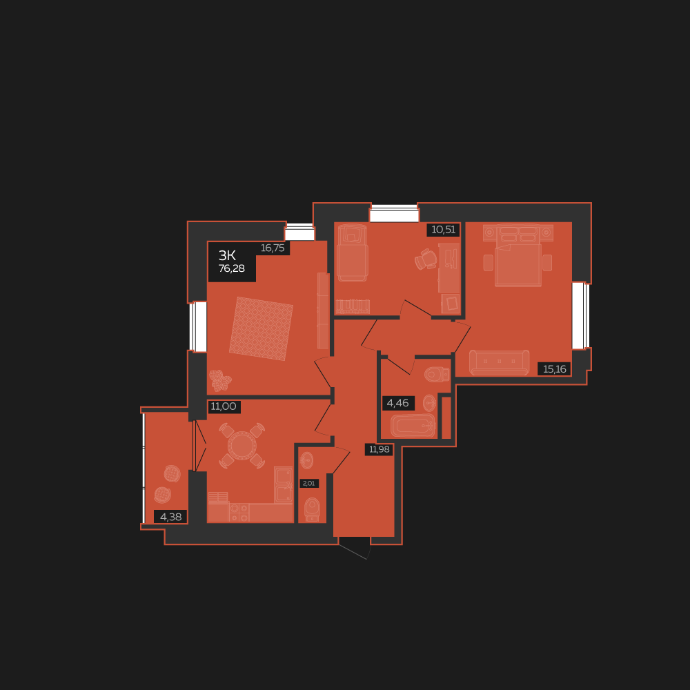 1161;16;76,28 м²;42,42 м²;4 490 000 ₽